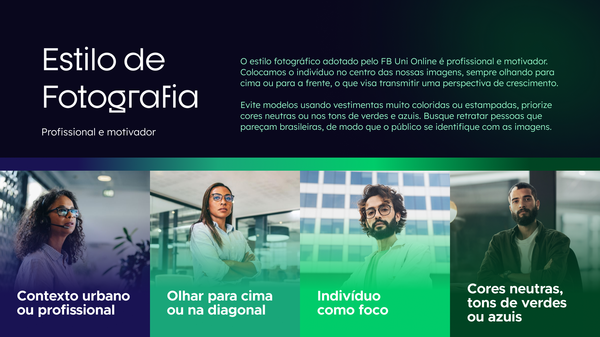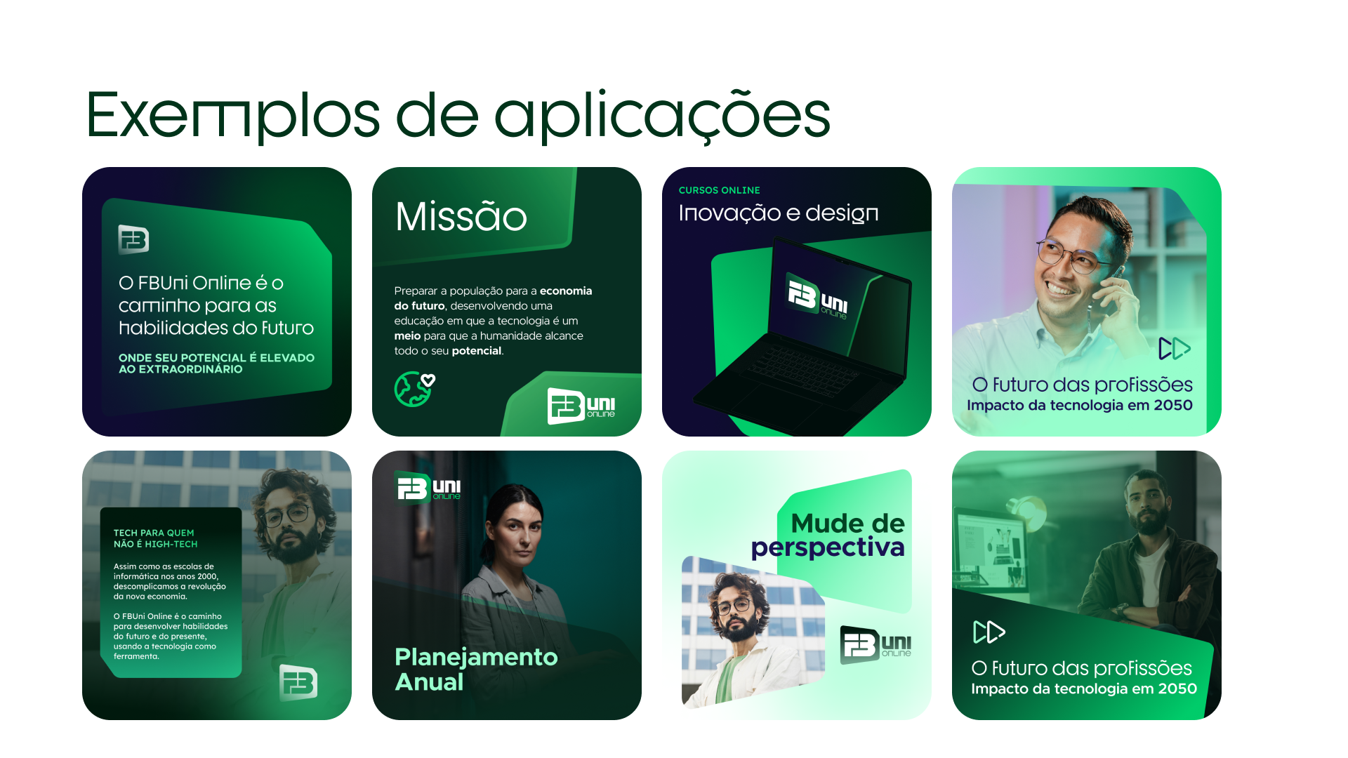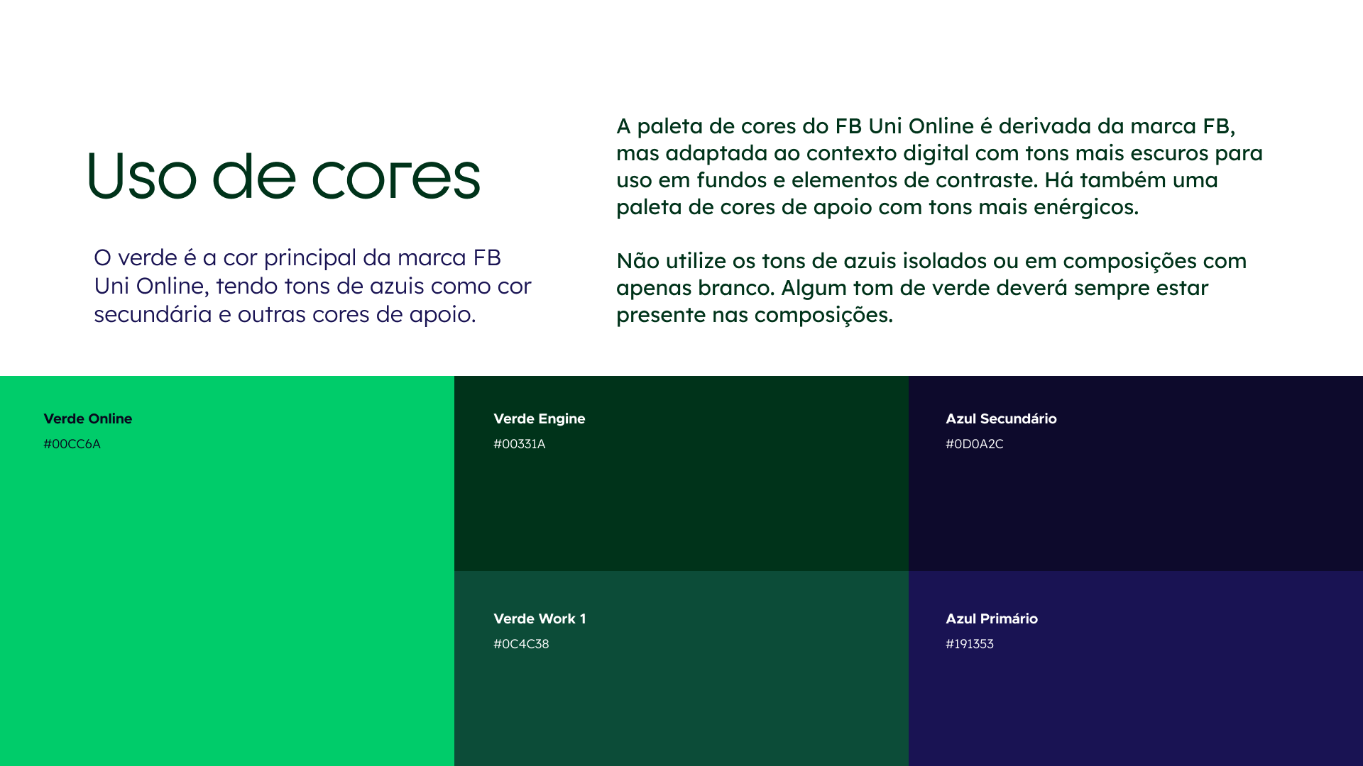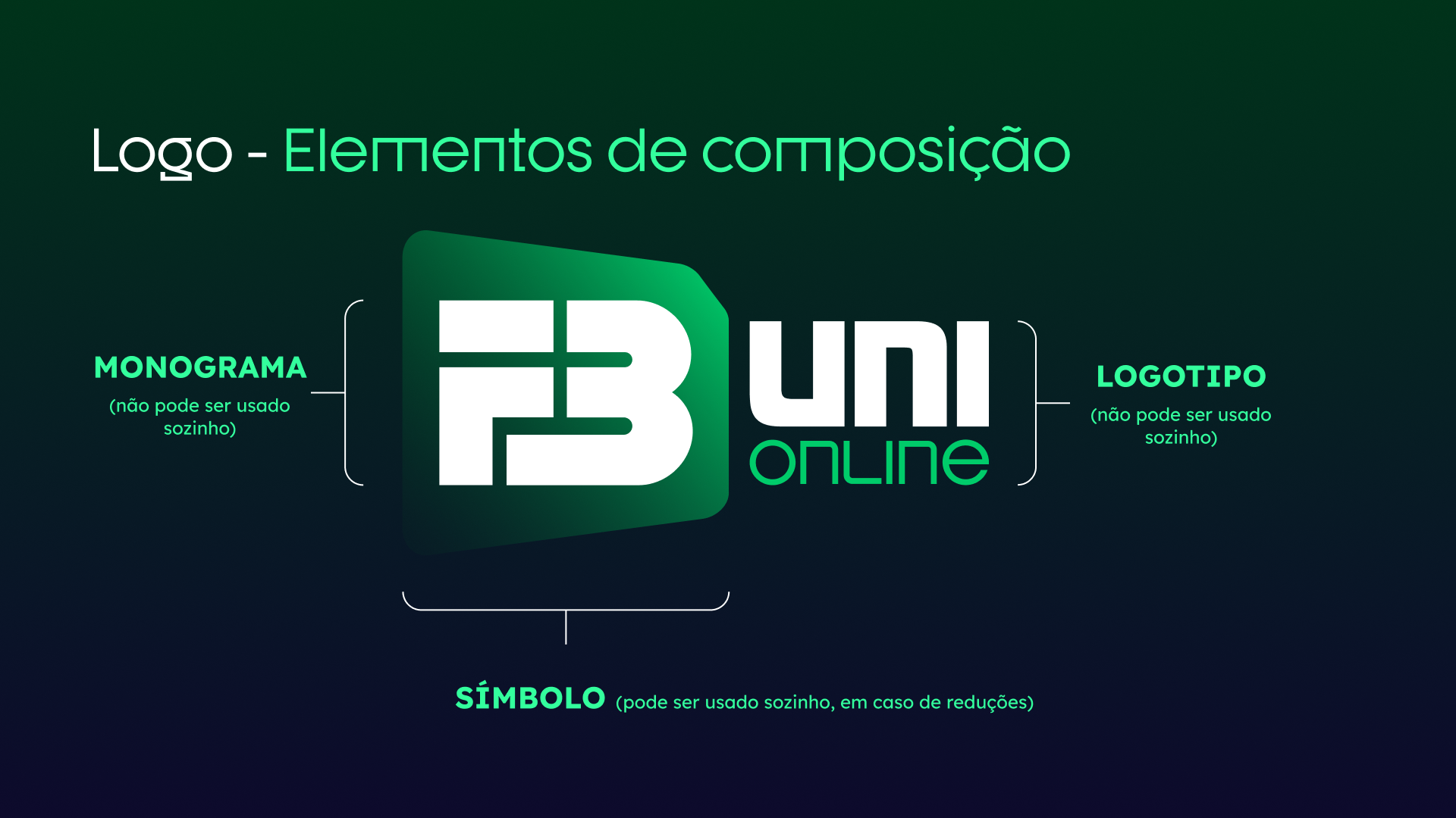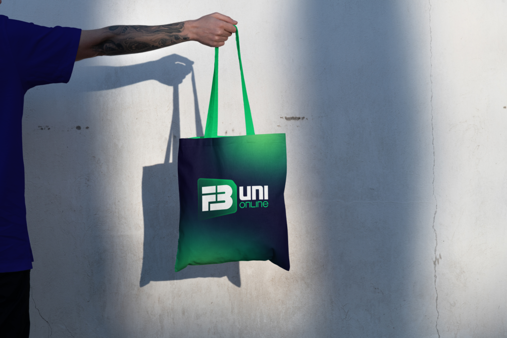 A identidade visual e o branding do FB Uni Online é uma derivação do FB pensada para o universo digital.